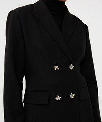 Elegante blazerjurk, ideaal voor een speciale gelegenheid of chic naar kantoor. De jurk heeft een lichte schoudervulling voor een mooie pasvorm, klepzakken aan de voorzijde en 4 unieke vierkante knopen.