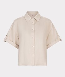 Cropped blouse met drukknopen en omgeslagen mouw detail. De blouse is mooi in combinatie met een van de bijpassende broeken en is gemaakt van 80% rayon en 20% nylon.