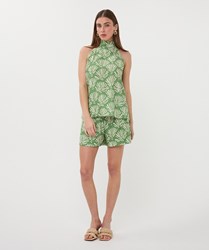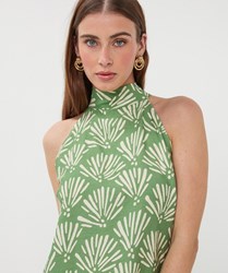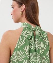 Halter top in onze Tropical print. De top heeft een strik achterin de nek en is gemaakt van 80% rayon en 20% nylon.