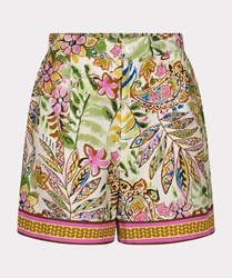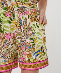 Bandplooi shorts in onze kleurrijke Jungle print. De shorts hebben steekzakken aan de voorzijde, een elastische tailleband en faux paspelzakken aan de achterzijde.