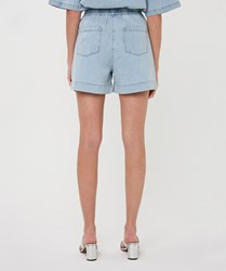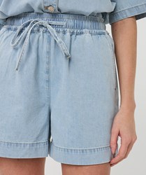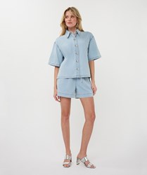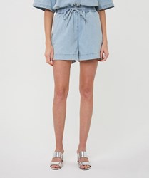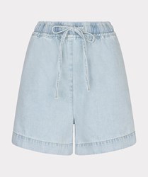 Licht gewassen denim shorts van 100% katoen met trekkoord en een elastische band in de taille en steekzakken aan de achterzijde. Match de shorts met je favoriete zomertop of met de bijpassende denim blouse voor een complete set.
