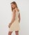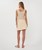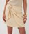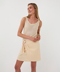 Korte rok met overslag en gouden organisch gevormde gesp. De rok is gemaakt van 63% Lyocell, 31% rayon en 6% polyester met een voering van 100% rayon.