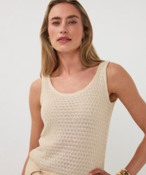 Fijnbrei top met kleine doorzichtige pailletjes die zorgen voor een lichte schittering.
