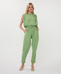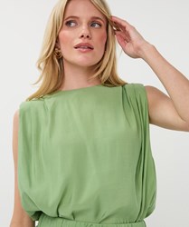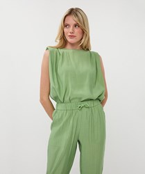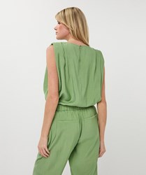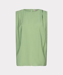 Stoere top met schoudervullingen voor een gestructueerde fit. De top heeft een knoopsluiting aan de achterzijde in de nek en is gemaakt van 80% viscose en 20% polyester.