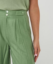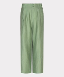Bandplooibroek met knoopdetail aan beide zijdes, steekzakken aan de voorzijde, een elastische tailleband en faux paspelzakken aan de achterzijde. De broek is gemaakt van 85% Lyocell en 15% nylon.